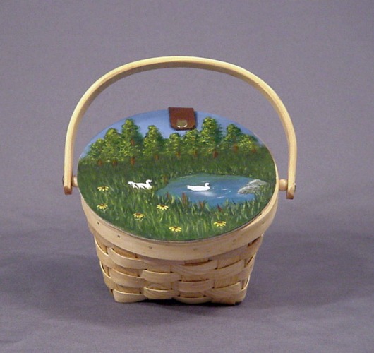 Acrylic on wooden basket. Protective clear acrylic finish.