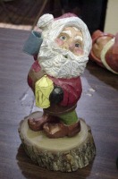 The second is a ‘little guy’ Santa, painted and holding his bag up in front